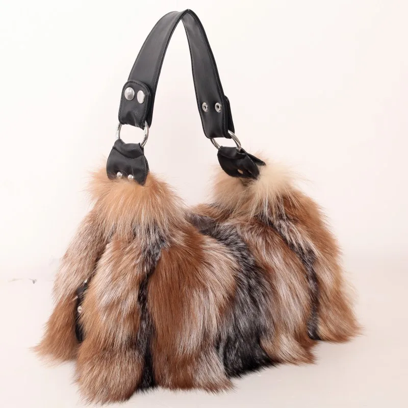 Luxry Real Fox Fur Women Handbags Genuine leather Newest Party Multicolour Bags Fox Fur Ladies Shoulder Bag Gift Crossbody bags